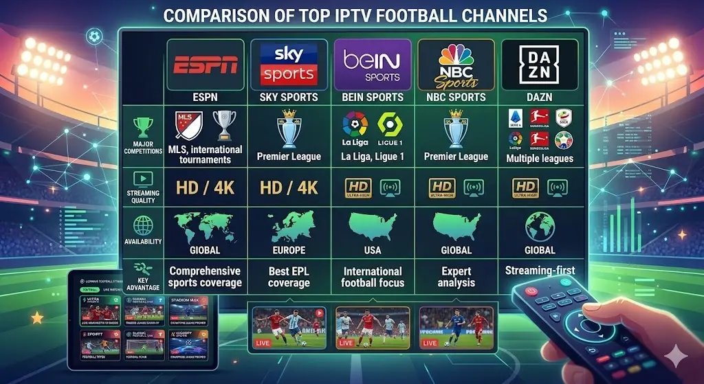 IPTV has revolutionized how football fans watch their favorite matches in 2026. With access to global sports broadcasters such as ESPN, Sky Sports, beIN Sports, NBC Sports, and DAZN, viewers can enjoy football competitions from around the world.
